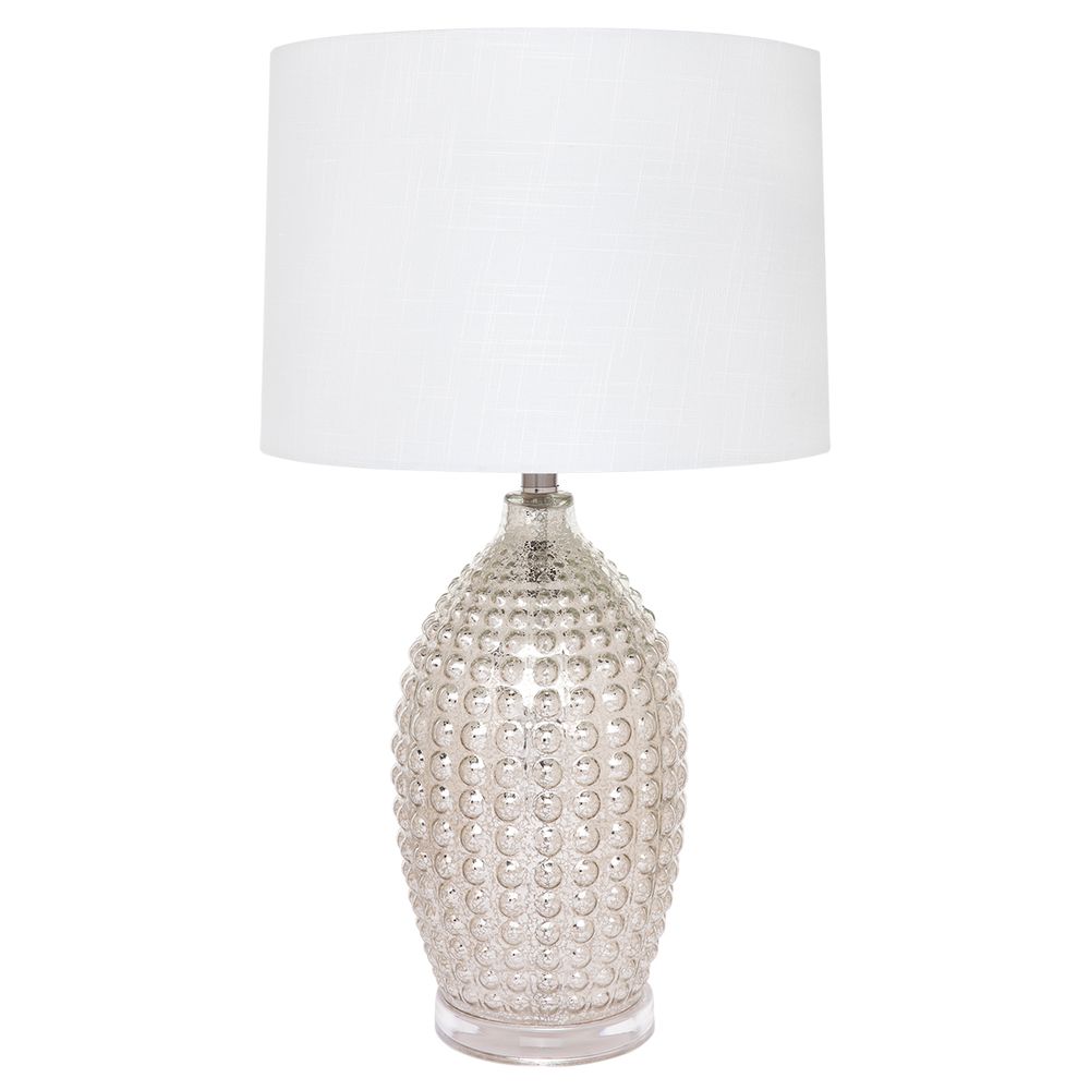 Add a touch of elegance to your home with the stunning Tabitha Mercury Glass Table Lamp. Featuring a unique dimpled glass design and a sleek acrylic base, this lamp adds a subtle yet striking texture to any space. The white linen shade provides a crisp, clean finish, complementing the lamp's sophisticated style. Perfect for bringing a glamorous, chic appeal to your living room, bedroom, or office, the Tabitha lamp is the ideal statement piece for any décor.
