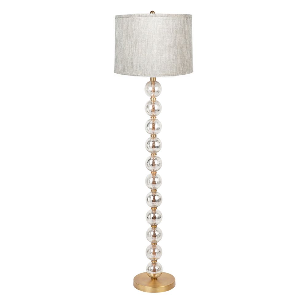 Need a bit of an eclectic touch to your room, then the Evie Floor Lamp is the one for you. The mercury glass baubles which are interspersed with brass fittings makes this lamp a good fit for your Art Deco theme. It is topped with a gold thread drum shade. The Evie range is also available in matching table lamp.