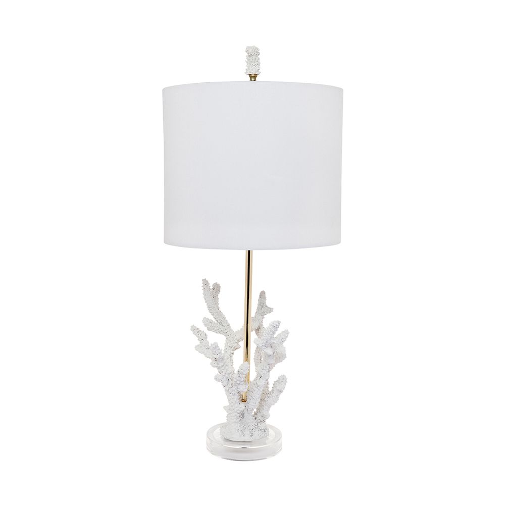 Illuminate your space with our exquisite coral-inspired resin lamp, meticulously crafted from rare coral molds for an authentic touch. Featuring a sleek gold stem and a sturdy acrylic base, this elegant lamp is topped with a satin white linen drum shade and finished with a stunning acrylic and coral finial. A perfect blend of coastal charm and timeless sophistication, it’s an ideal statement piece for any home décor.