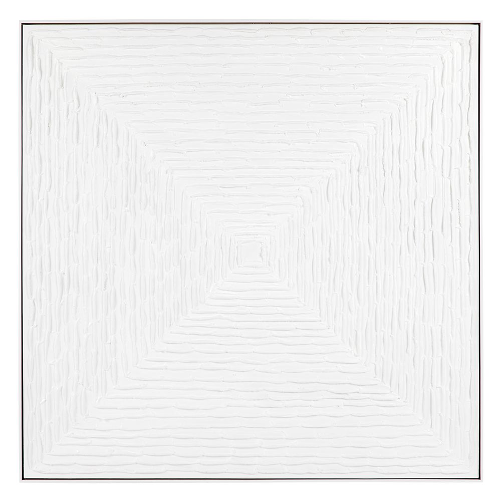 A calming artwork, White Vortex oil on canvas infuses interiors with beautiful texture through its three dimensional quality. Inspired by the Japanese art of Hokime found in Zen practices, White Vortex features a mesmerising progression of squares that are patiently applied by hand, using gesso and oils, to create a sense of the Japanese ‘Wabi Sabi’ aesthetic - beauty through imperfection - embracing the roughness of nature, simplicity and modesty. Mounted in a white shadow box frame, White Vortex creates a stunning feature at 138cm square.