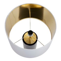 Unpretentious luxury, our Paola table lamp features a divine solid black natural marble and brass finished cylindrical base atop with a fresh white linen drum shade and gold reflective pvc lining. Perfectly proportioned, the Paola table lamp is a versatile piece that is at home in a classic setting as it is a contemporary. The best selling Paola table lamp, with its clean lines and quality construction, has been inspired by Mykonos resort living and would be a timeless addition to any bedroom or living room setting. Also available with a contrasting black shade. Note that this item contains natural stone. Therefore colours \ finishes may vary and no two items are identical.
