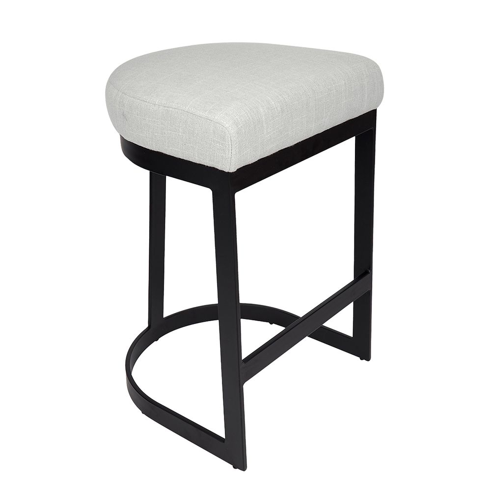 Exuding a sophisticated fusion of mid-century and industrial aesthetics, the Brooke kitchen stool, upholstered in natural linen is supported by a sleek black iron frame, epitomizing modern style and comfort. Crafted with precision, this stool seamlessly combines form, function, and undeniable elegance for your bar or kitchen space. Also available in a brass iron frame.