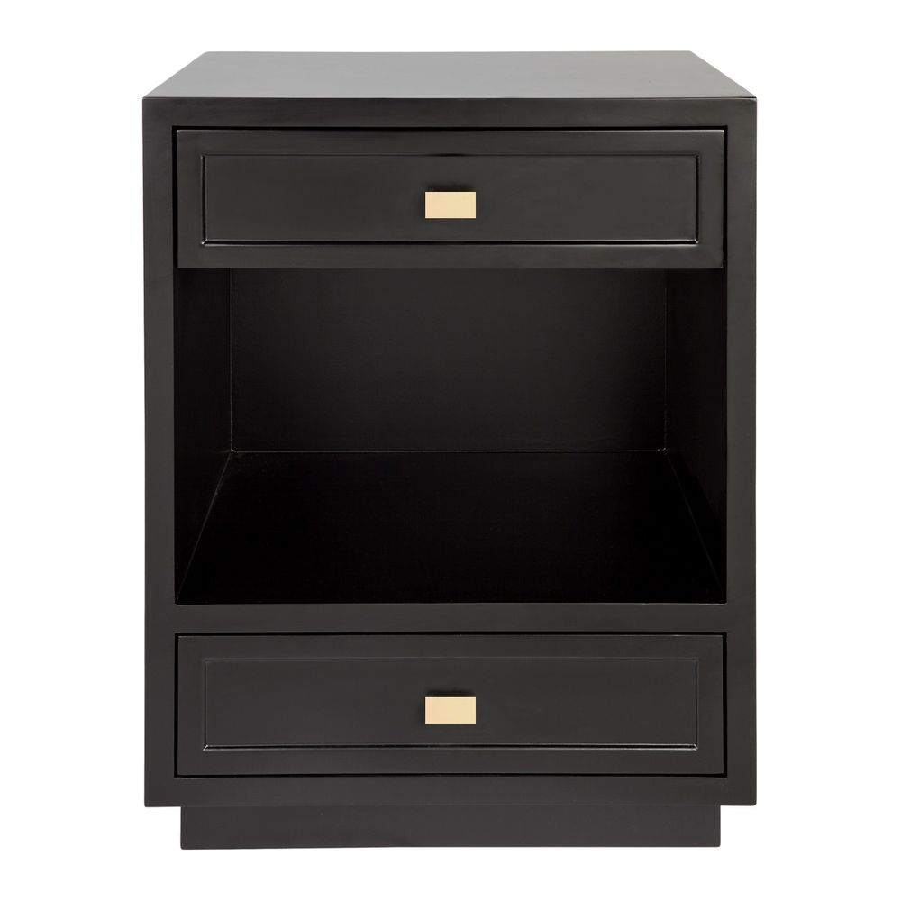 The Logan bedside table brings a refined and simple elegance to your space with a black satin finish and clean firm lines, tempered with subtle shaker panelling. A roomy nook between two drawers provides the perfect organisation solution. The timeless design of the Logan bedside table sits comfortably within a contemporary or classically styled environment offering true versatility with the option between brushed gold and polished nickel handles.