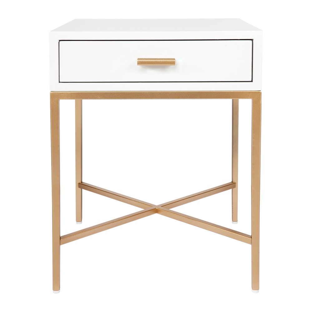 Nessa 1 Drawer Bedside Table -White/Gold