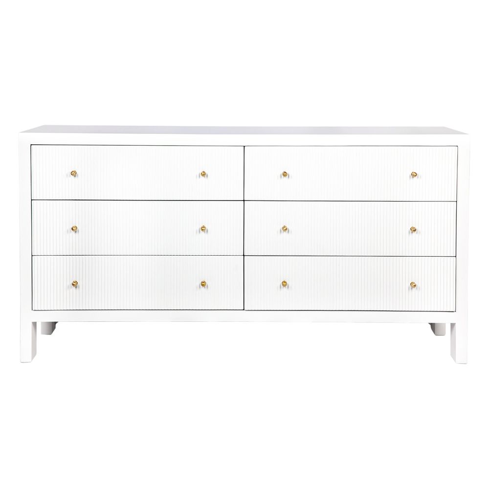 Enveloping your space with an airy feel, our Ariana 6 drawer chest is all about the details from the fluted drawer fronts to brushed gold handles. Accentuating your bedroom or living room space with its fresh colour and textural finish, scaled for both maximum storage and design presence. The Ariana chest of drawers is the epitome of function and beauty that will instantly elevate your colour scheme and design.