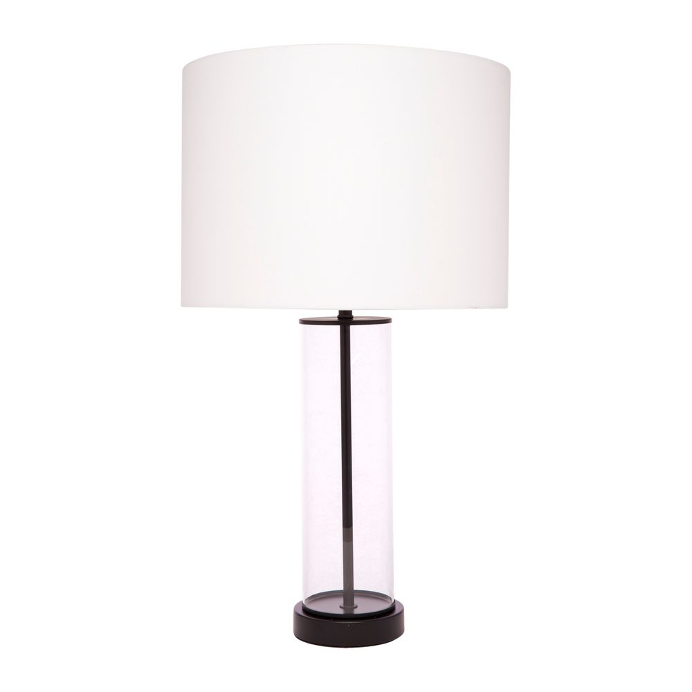 Brighten up your home with the East Side Table Lamp, a perfect blend of elegance and modern design. Featuring a clear glass body paired with a matte bronze-black metal rod and trim, this lamp adds a sophisticated touch to any room. Its contemporary take on a classic design is complemented by a white drum cotton shade, offering both style and functionality. Illuminate your living space with timeless charm and modern flair with the East Side Table Lamp.