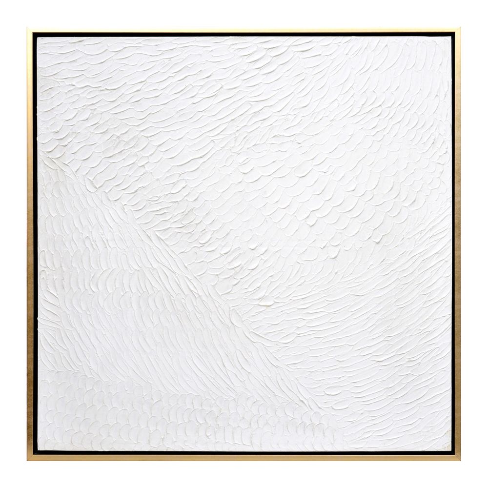 Snow White canvas painting infuses interiors with a sense of serenity. A beautifully textured artwork, Snow White offers a calming statement in any interior. Mounted in a striking gold shadow box frame for a touch of luxe. Available in two sizes.