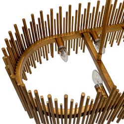 Assembled from a striking arrangement of gold-leaf finished iron rods, the Florina pendant is an awe-inspiring addition to sophisticated spaces. Perfectly placed as a dining or entry feature, the Florina pendant radiates refined hues of glowing gold, fusing modern and vintage allure for a truly elevated statement lighting piece.