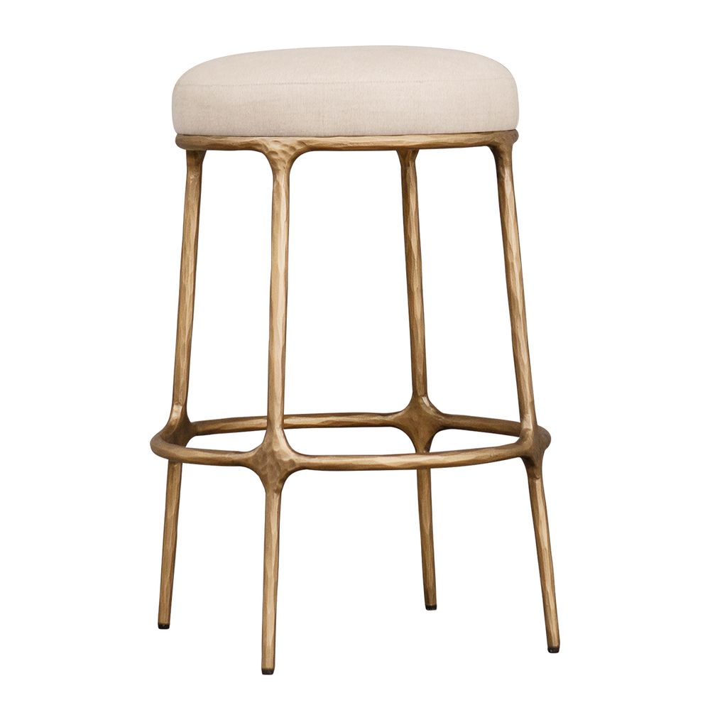Heston Brass Kitchen Stool - Natural Linen