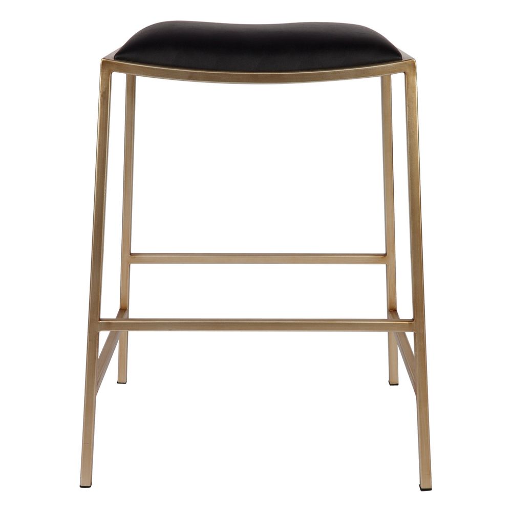 A laid-back blend of mid-century and industrial styles, Kai's simplistic armless design is the epitome of modern style and comfort. Constructed from a sturdy iron frame, with a curve wrapped seat in low- maintenance black vegan leather. Pure comfort, the Kai gold kitchen stool features a high-density, foam-filled cushioned seat bringing form, function and unmistakable style to your bar or kitchen zone.