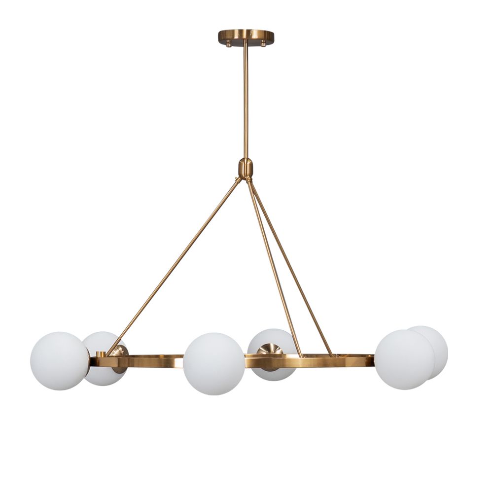 Frosted milk orbs float amidst a circular brass frame to create a gentle, warm radiance. Fall in love with the luminescent Mid-Century Modern Payton Pendant. Ideal for dining rooms, living areas, or entryways, its timeless design and high-quality construction ensure lasting beauty and modern functionality.