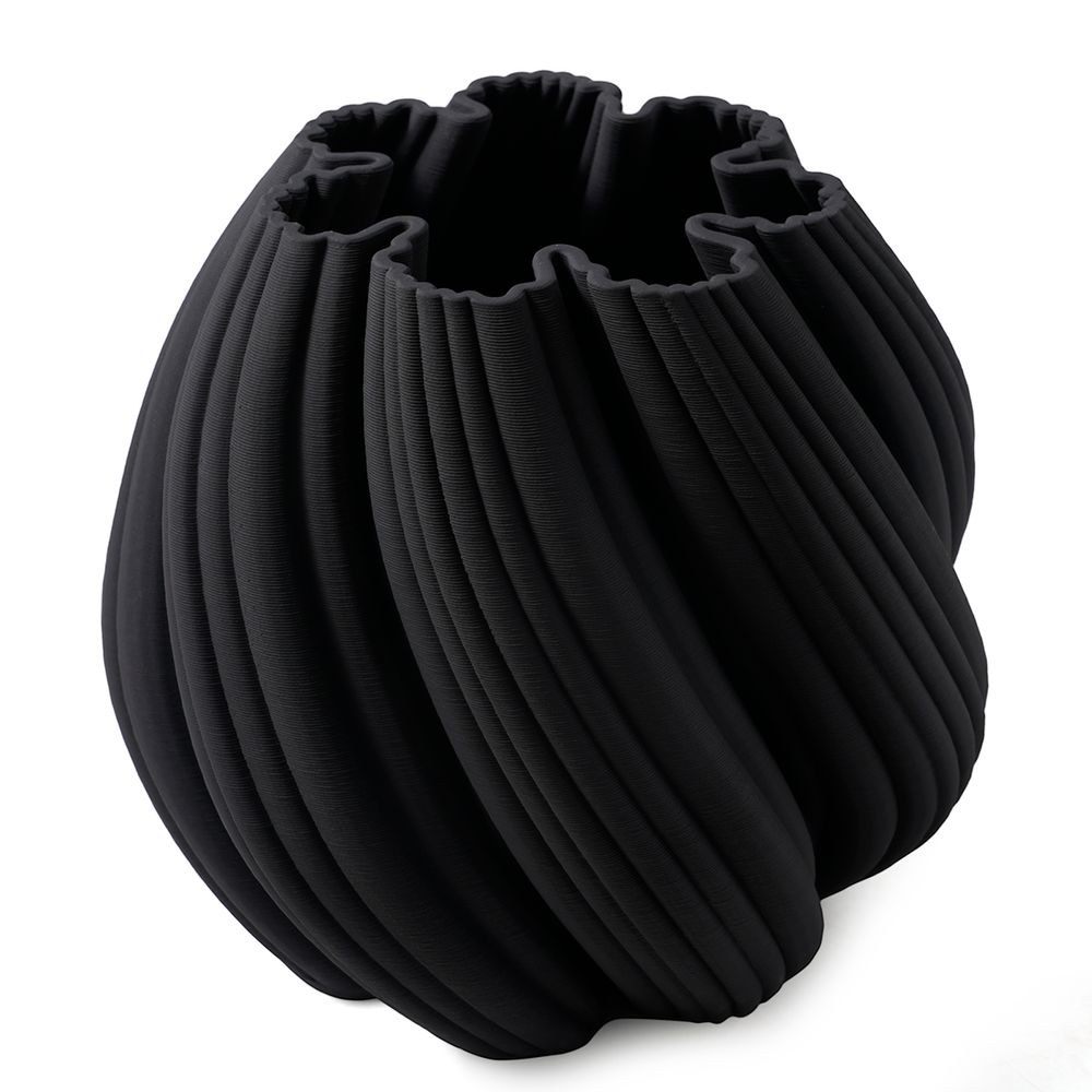 Elevate your décor with this textured, 3 dimensional porcelain decorative vase featuring a striking twist effect design. Available in black and white, its modern silhouette adds texture and elegance to any room. Perfect as a standalone piece or for faux loral arrangements, this vase offers both form and function for contemporary homes. Note this decorative product is porous in nature, and should not be filled with water.