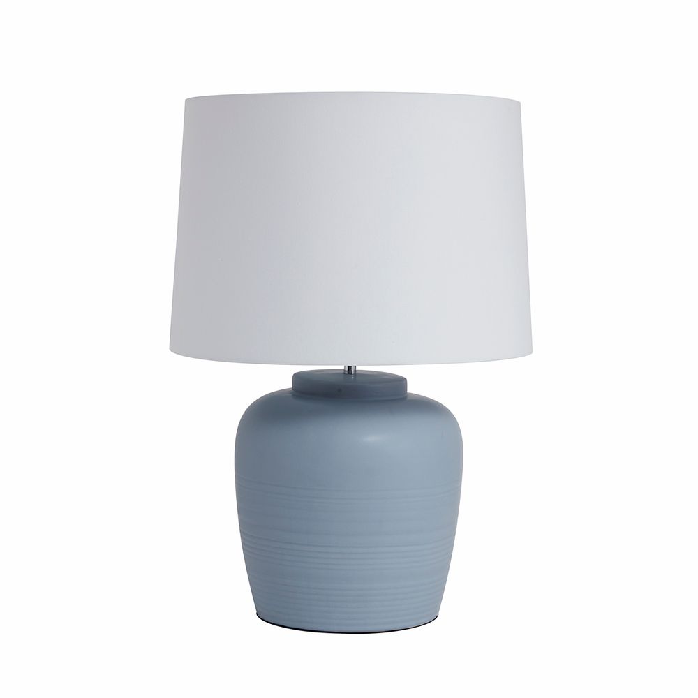 The ceramic table lamp features a sleek matte grey base with delicate textured detailing, paired with a classic white fabric shade. Its neutral palette and minimalist design create a warm and inviting ambiance, perfect for enhancing modern or contemporary interiors. Ideal for living rooms, bedrooms, or workspaces, this lamp provides both functional lighting and a stylish decorative touch for your home.