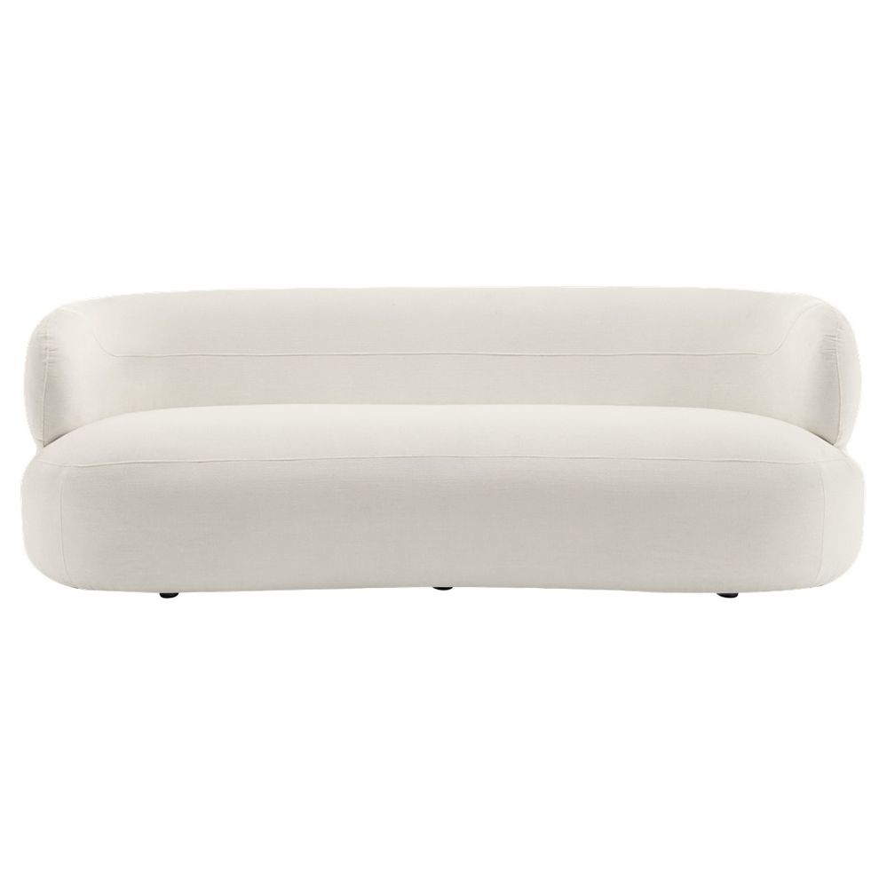 Transform your living space with this elegant curved sofa, upholstered in a soft, textured ivory chenille fabric. Combining minimalist design with superior comfort, this sofa features a sculptural silhouette perfect for contemporary or modern interiors. Its neutral hue complements various decor styles, creating a sophisticated ambience. Built for durability and style, this sofa is both functional and aesthetically pleasing, making it an ideal centrepiece for your home.