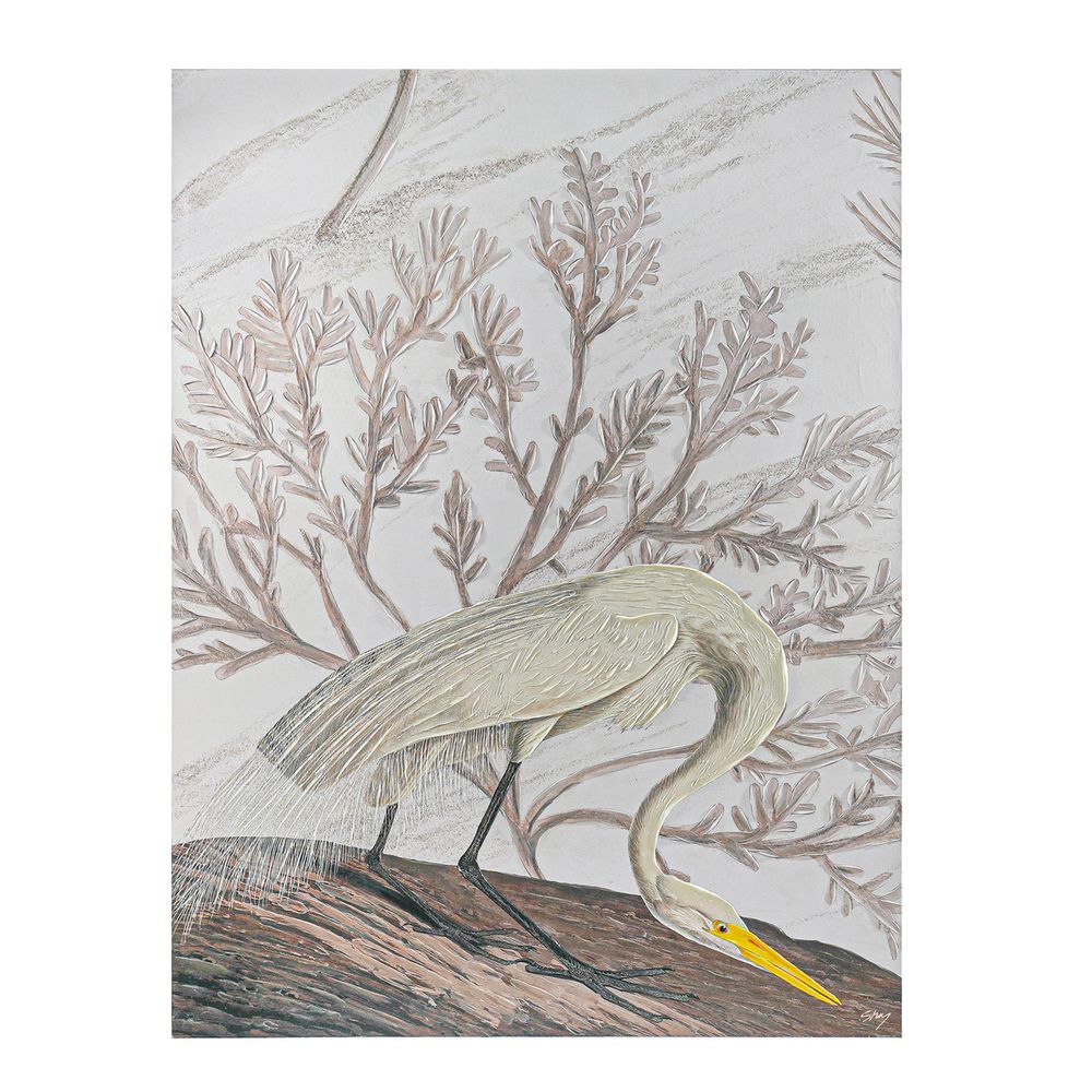 This exquisite artwork by Shay, an acclaimed American artist, captures the elegance of a heron against a serene botanical backdrop. Shay’s textured brushstrokes bring the heron to life, showcasing her mastery of precision and passion in her artistic journey from culinary creations to vibrant visual storytelling. The muted tones and intricate detailing of the feathers harmonise beautifully with the natural foliage, evoking the tranquillity of French Provence. Perfect for adding sophistication to any interior setting.