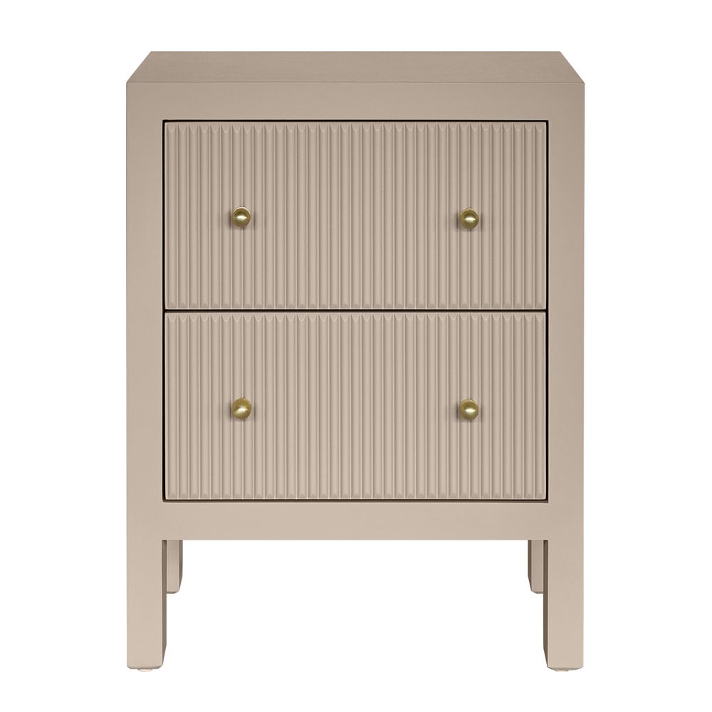 This chic Ariana Small Bedside Table, a fresh addition to the Ariana Bedside Table Range, now comes in taupe and beige finishes, offering versatile neutrals for modern bedroom décor. Featuring fluted drawer fronts and brushed gold handles, this elegant taupe bedside table adds texture and sophistication, perfect for contemporary or classic interiors. Its compact yet spacious design ensures practical bedroom storage solutions, blending style and function seamlessly. Ideal for small spaces, this beige nightstand brings airy elegance, making it a top 2025 bedroom furniture trend for timeless, minimalist aesthetics.