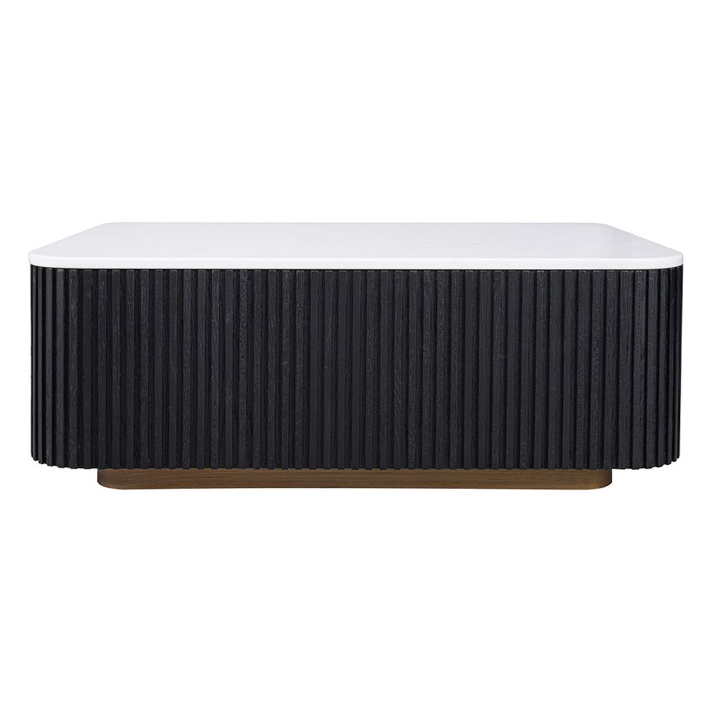 The Mason Rectangular Coffee Table redefines contemporary elegance with its premium materiality and striking form. A smooth Sivec marble top with natural veining sits above a fluted oak wood base in a brushed black finish, elevated by a refined metal antique gold plinth. Its rectangular silhouette offers generous surface space while maintaining a sleek, architectural profile. Perfect for both modern and classic interiors, this statement piece combines luxury, durability, and timeless sophistication.