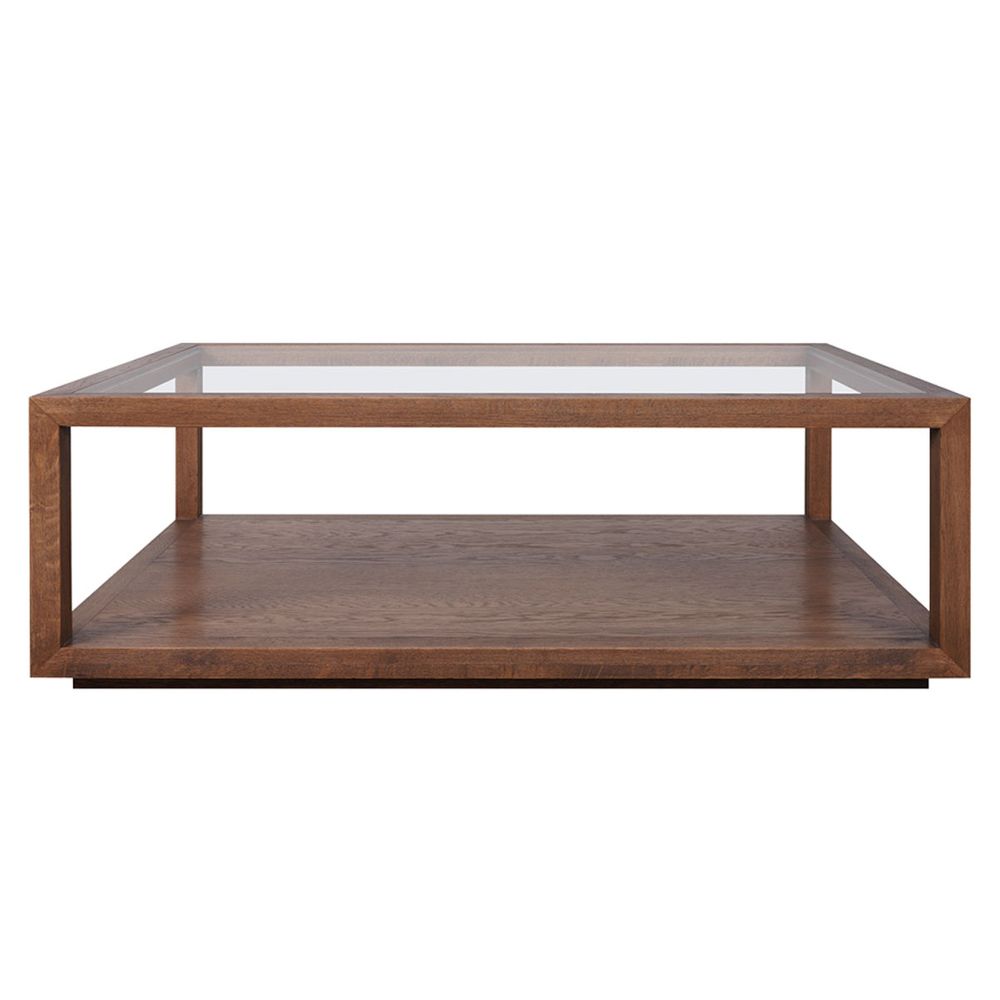 The Sadie Collection showcases a perfect balance of brushed oak wood and sleek tempered glass, designed to bring effortless sophistication to modern and classic interiors. Bringing this refined aesthetic into focus, the Sadie Rectangular Coffee Table features a rich walnut-finished oak frame, infusing warmth and timeless elegance into any space. The crystal-clear tempered glass top enhances natural light, creating an open and refined look, while the lower oak shelf offers practical storage or a display surface for curated décor. With clean lines and a minimalist silhouette, this coffee table seamlessly integrates into contemporary and traditional interiors, making it a statement piece that embodies both function and style.