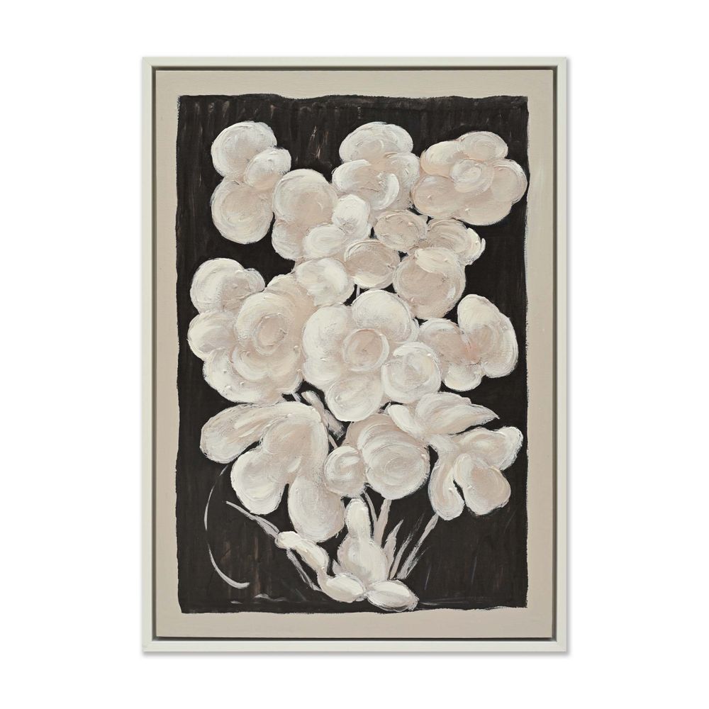 The Textured Bouquet Enhanced Canvas Print brings timeless elegance to any setting with its bold contrast and delicate detailing. A soft cluster of white blooms emerges from a striking black background, revealing a tactile, layered finish that enhances its visual depth. Expertly handcrafted on high-quality framed cotton canvas, each piece offers subtle variations, making every artwork a unique expression. A refined decorative statement, this print is ideal for interiors seeking graceful form and artistic texture.