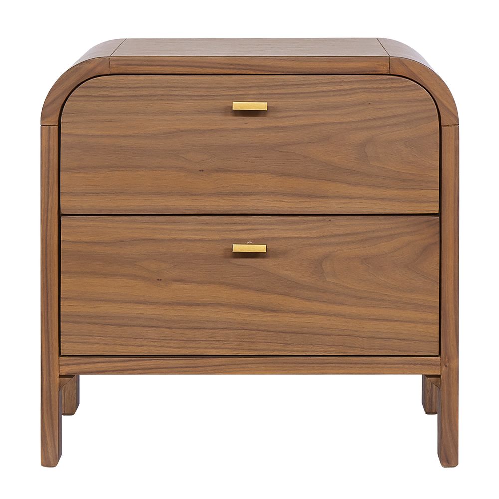 The Chisholm 2 Drawer Bedside Table in Walnut is a sophisticated new addition to the Chisholm range, designed to bring warmth and understated elegance to any bedroom. Crafted in a rich walnut veneer, it showcases the collection’s signature soft curves and refined silhouette. Two spacious drawers glide smoothly on soft-close metal runners, while brushed gold T-bar handles add a luxurious finishing touch. This versatile piece offers timeless style and practical storage for both modern and classic interiors.