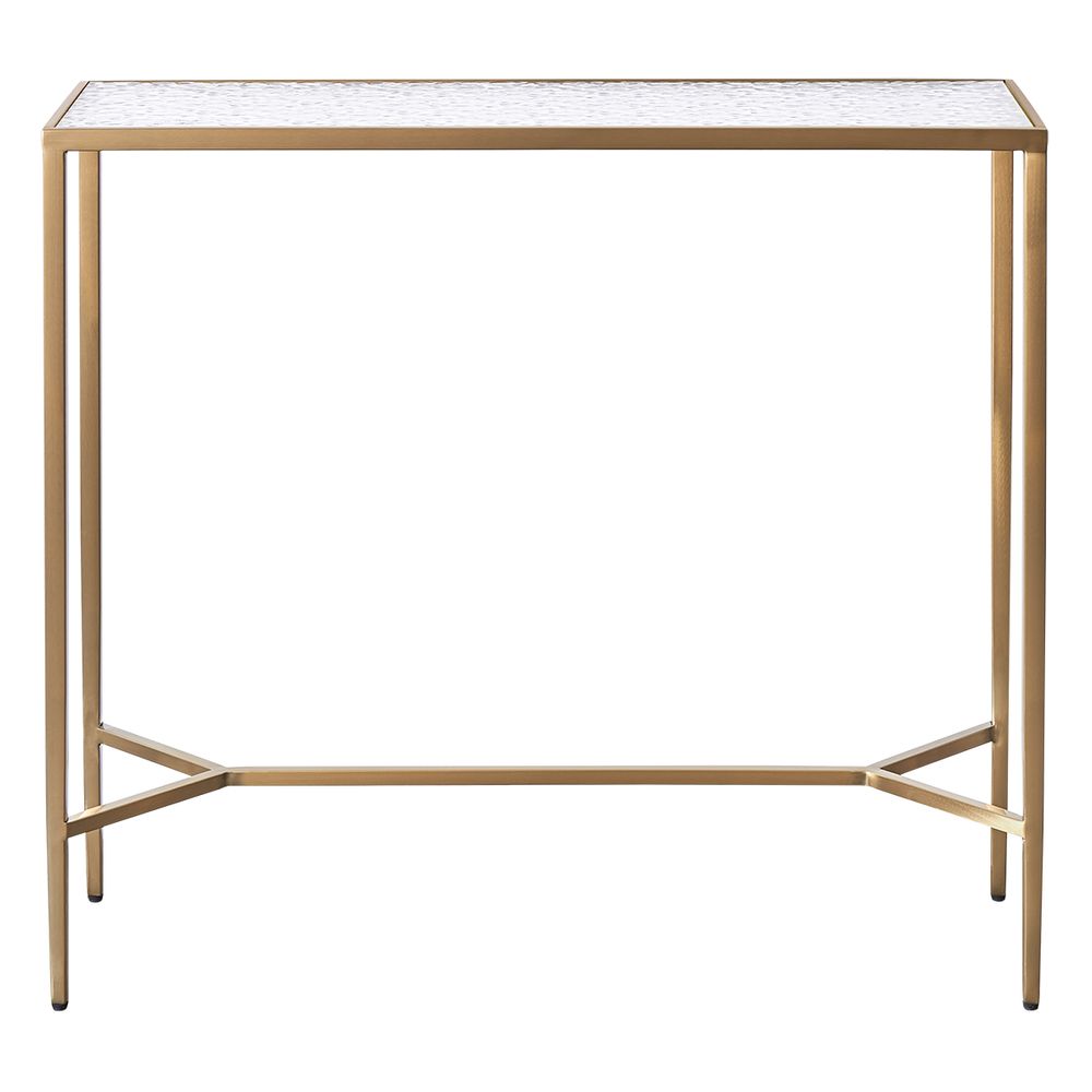 The Chloe Rippled Glass Console Table is a standout piece in the Chloe Rippled Glass Collection, blending elegance with modern design—a vital consideration for interior designers enhancing client spaces. Featuring a clear rippled glass top and a brushed gold stainless steel frame, its light-reflective surface with subtle texture elevates hallways, entryways, or living spaces. Available in two sizes for styling flexibility, this timeless design requires no assembly, offering a sophisticated solution for both classic and contemporary interiors.