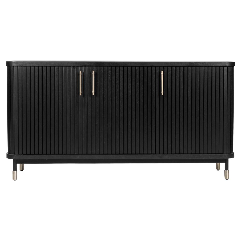 The Sophia Buffet Black delivers a sophisticated storage solution with contemporary appeal. Featuring sleek fluted door fronts, elegant brass-finished handles, and ample internal shelving, it combines modern design with everyday practicality. Resting on slim legs with brass-capped feet, its streamlined profile brings an elevated sense of style without overwhelming a space. Perfect for dining rooms, entryways, or living areas, this versatile buffet enhances interiors with architectural detail and timeless character. Also available in White and Oak Natural finishes.