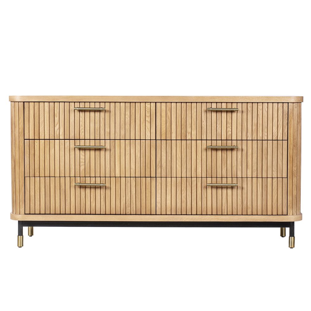 The Sophia 6 Drawer Chest from the contemporary Sophia Range combines refined detailing with everyday functionality. Featuring fluted panel drawer fronts, brass finished handles and a slimline frame elevated on brass capped legs, it introduces a sleek architectural silhouette to bedrooms or living spaces. Six spacious soft close drawers provide generous storage while maintaining a streamlined profile, ideal for modern and transitional interiors. Available in Black, White and Oak Natural finishes, the Sophia 6 Drawer Chest offers versatile, elegant storage designed to enhance any home.