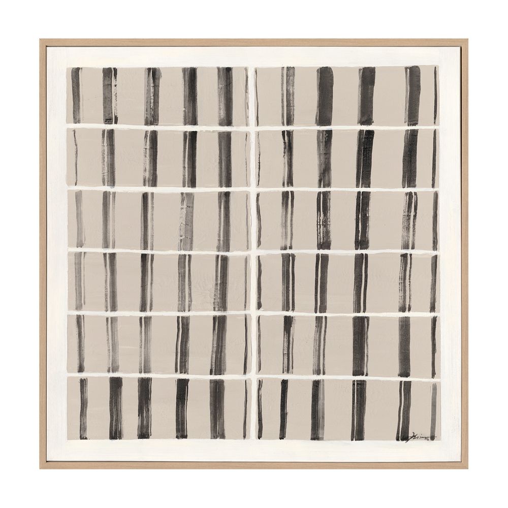 Elevate your interior with this striking hand-painted abstract artwork. The grid pattern, rendered in bold black and soft grey, offers a modern take on minimalist design. The textured brushstrokes add depth and visual interest, making it a perfect focal point for contemporary spaces. Framed in natural wood, this piece brings a balance of simplicity and sophistication, ideal for those seeking a refined yet impactful addition to their decor.