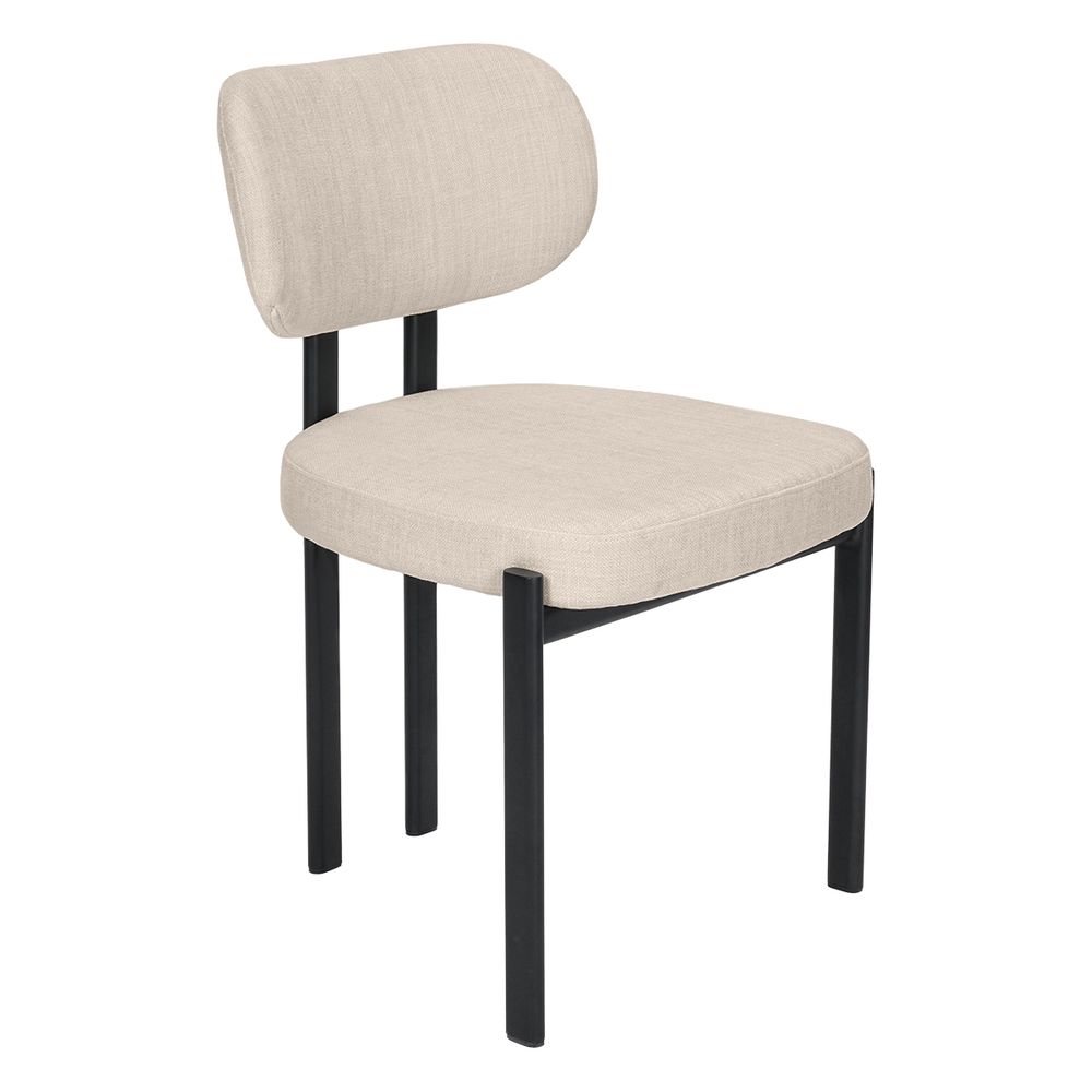 Enhance your space with this modern upholstered dining chair, crafted with a sleek black metal frame and softly textured natural chenille. Part of a versatile range that includes speckled brown and ecru upholstery options, its minimalist silhouette and contoured cushioning offer both comfort and style. Ideal for contemporary dining rooms, offices, or relaxed lounge settings, this chair brings warmth, durability, and refined simplicity to everyday interiors.