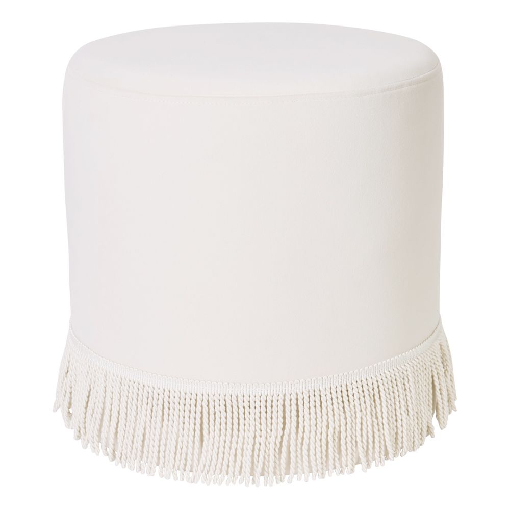 Introduce a touch of elegance to your space with this round velvet fringe ottoman, available in soft pink, ivory, and duck egg blue velvet. Featuring luxurious velvet upholstery and playful fringe detailing, it offers both style and functionality. Perfect as a footrest, extra seat, or statement decor piece, this versatile ottoman enhances living rooms, bedrooms, or dressing spaces with charm and sophistication.