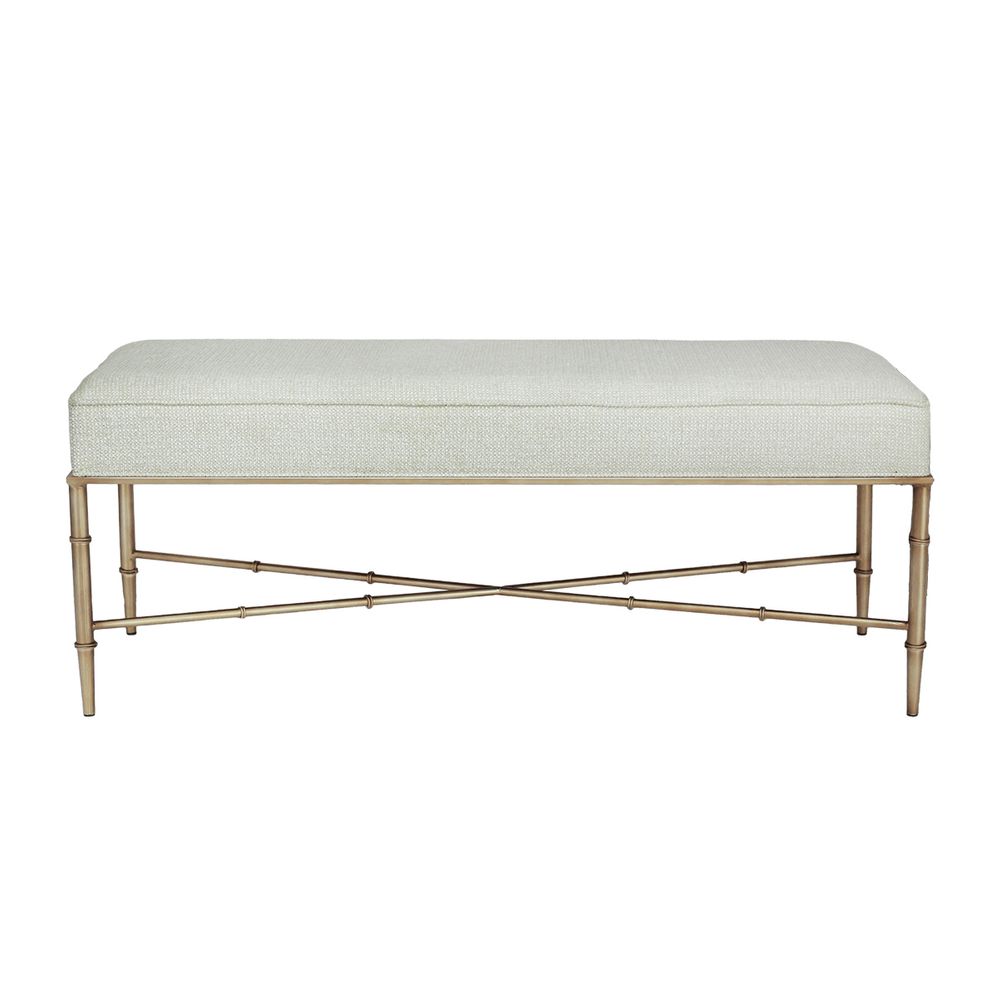 Hacienda Antique Gold Iron Bench Ottoman - Speckle Ecru