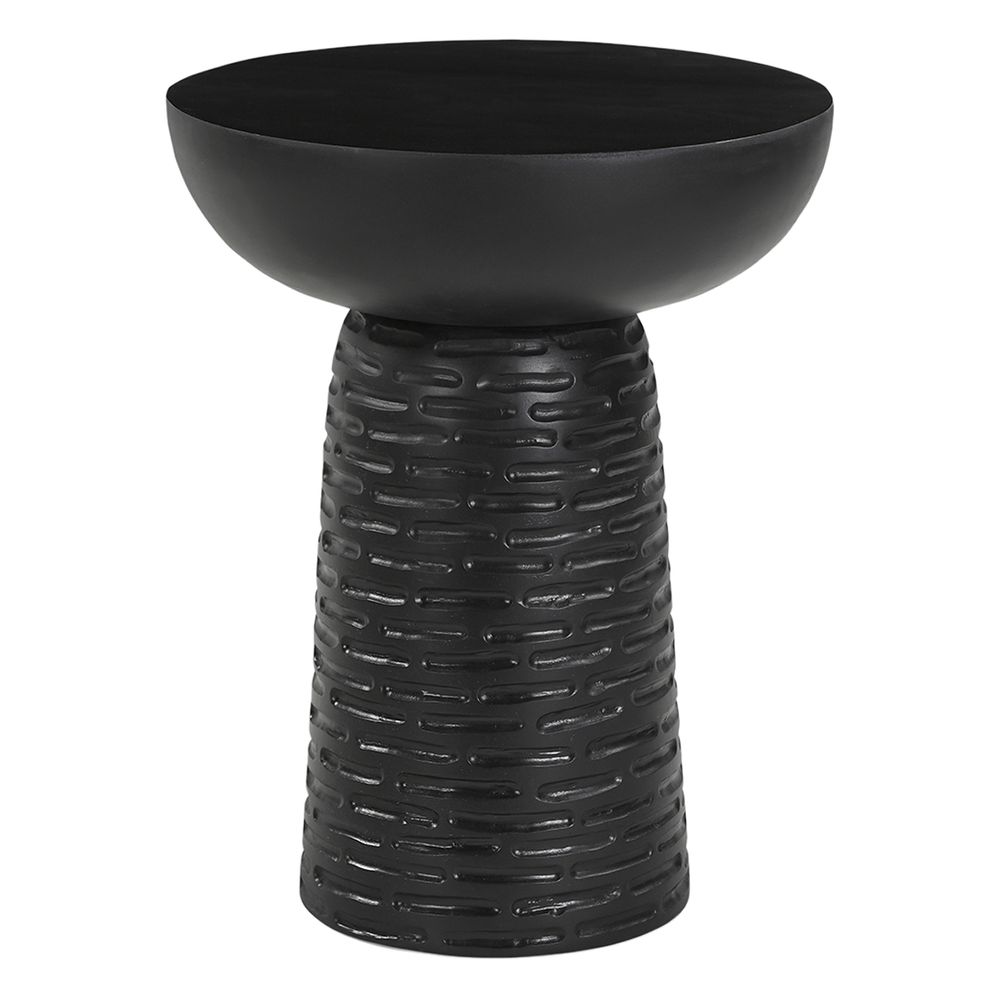 Brings bold texture and sculptural form to any interior with The Highland Side Table - Short. Crafted from solid mango wood, it features a deeply carved conical base paired with a wide, smooth round top for a striking contrast. Perfect as an accent piece beside a sofa or lounge chair, it blends artisanal craftsmanship with modern design. Also available in a tall version, offering versatile styling for layered or standalone use.
