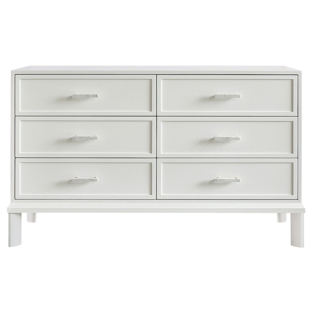 Brighten your space with the Jill 6 Drawer Chest in White. Clean lines and six spacious drawers offer practical storage, while marble handles introduce subtle texture and luxury. Its fresh painted finish and elegant detailing make it the perfect anchor for serene and sophisticated interiors.