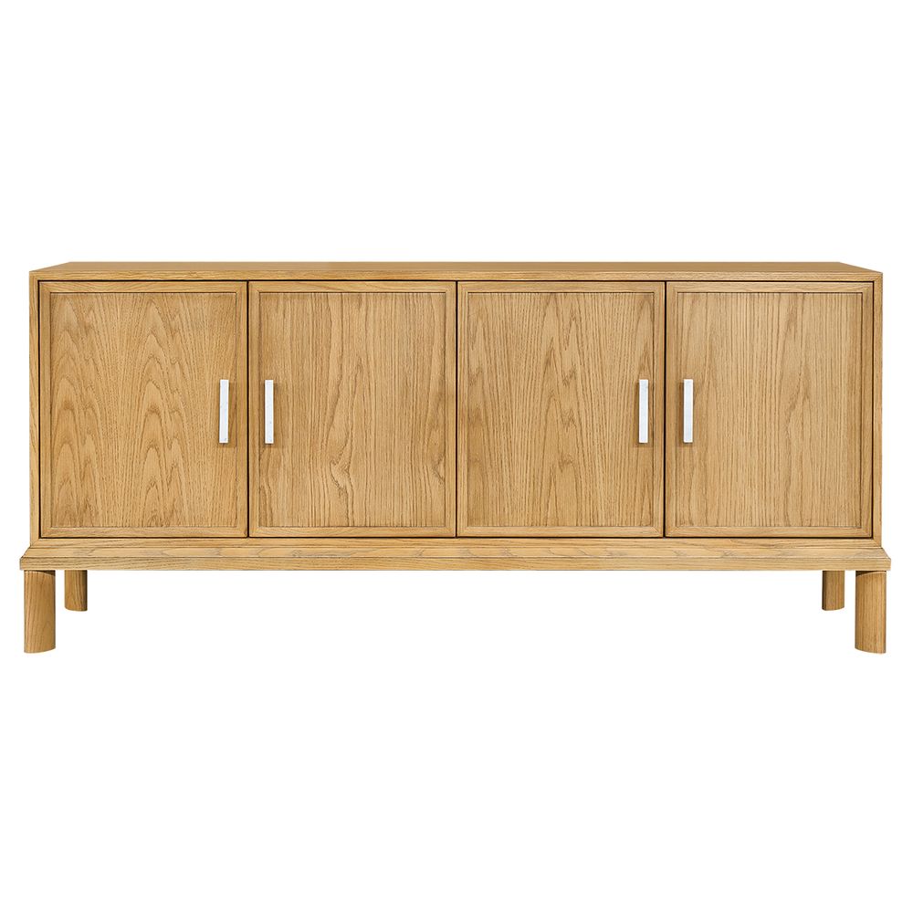 Function meets style in the Jill Buffet in Natural Oak. Designed with four doors and adjustable shelving inside, this piece offers generous storage with a light, earthy tone. The white marble handles and refined profile suit Scandinavian, coastal or transitional interiors seeking natural texture and elegant form.
