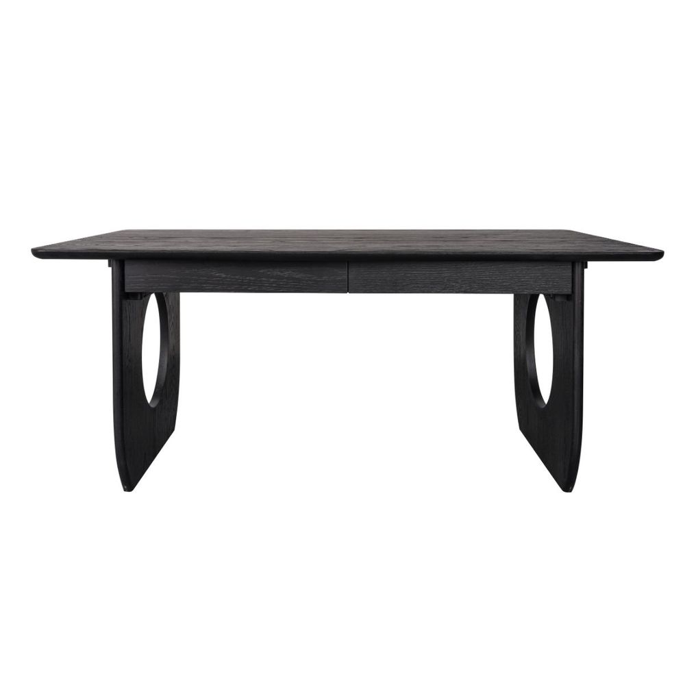 Bold and architectural, the Harrington Desk in solid black oak makes a striking statement in contemporary workspaces. Crafted from solid oak, its strong silhouette is defined by distinctive oval cut-out legs and softly rounded edges that balance form with function. Two discreet drawers are seamlessly integrated beneath the tabletop, offering practical storage while maintaining a clean, refined profile. Finished in a deep black stain that highlights the natural grain, this desk brings a confident, modern edge to home offices, studies or creative spaces.