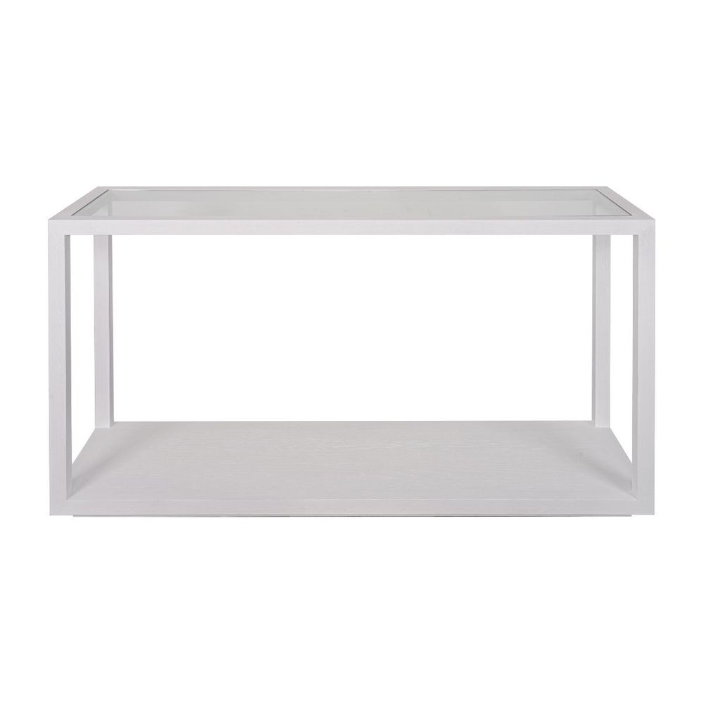 The Sadie Console Table in White embodies fresh minimalism with a crisp, clean silhouette. A glass top lightens the look, while the bright white frame offers a modern, airy presence. Ideal for coastal, Scandinavian or contemporary interiors, it’s the perfect backdrop for curated décor. The open shelf beneath provides practical display or storage, adding functionality to its sleek form. Whether styled in an entryway or living room, Sadie’s white finish brings brightness and sophistication to your space.