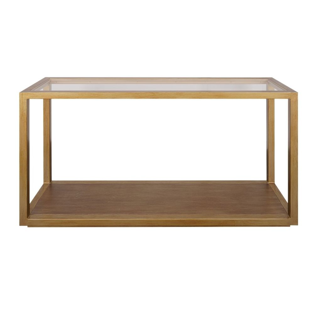 The Sadie Console Table in Antique Gold delivers understated glamour with a refined architectural edge. A clear tempered glass top floats above a warm antique gold frame, creating an elegant contrast with the timber shelf below. Its open design feels airy while offering generous surface space for styling and storage. Whether placed in a hallway, living room or entryway, this versatile console balances sophistication and functionality. With timeless appeal and clean lines, it complements both classic and contemporary interiors.