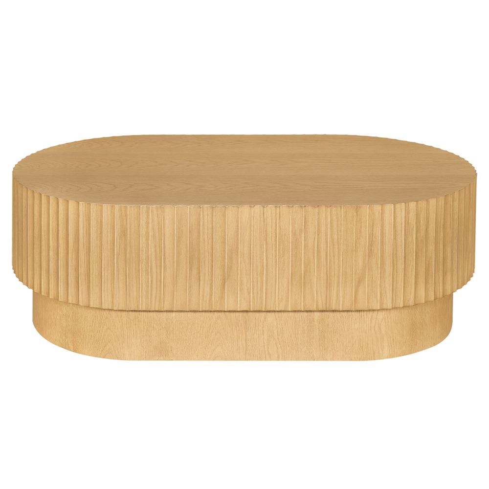 The Avery Oval Coffee Table in Natural Oak brings sculptural warmth and texture to living spaces. Featuring a fluted timber base and smooth oval top, this statement piece highlights the beauty of natural oak grain. Its generous surface area and refined silhouette make it ideal for anchoring lounges with a soft, organic aesthetic.