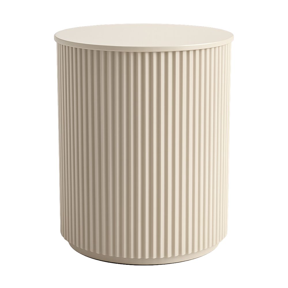 The Nomad Side Table brings sculptural simplicity and modern elegance to contemporary interiors. Defined by its fluted cylindrical silhouette and smooth round top, this versatile piece adds texture and architectural interest without overpowering a space. Perfect as a sofa side table, bedside table, or accent piece, the Nomad balances form and function effortlessly. Finished in a soft painted surface, it’s available in White, Black, Cream, Mocha, and Sage allowing it to layer seamlessly into neutral, earthy, or modern colour palettes while delivering timeless style.