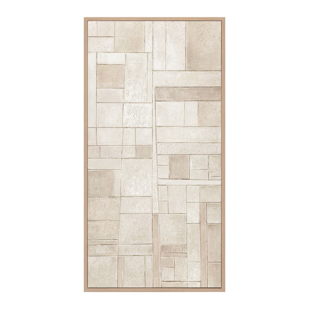 A refined study in texture and form, the Echo Series I and II are hand-painted acrylic artworks that bring sculptural depth to the wall. Each piece features a composition of layered geometric blocks in soft neutral tones, creating an architectural feel that’s both calming and contemporary. Framed in natural wood for added warmth, they are sold separately but designed to pair seamlessly together. Display as a duo or individually to suit your space with sophisticated minimalism.