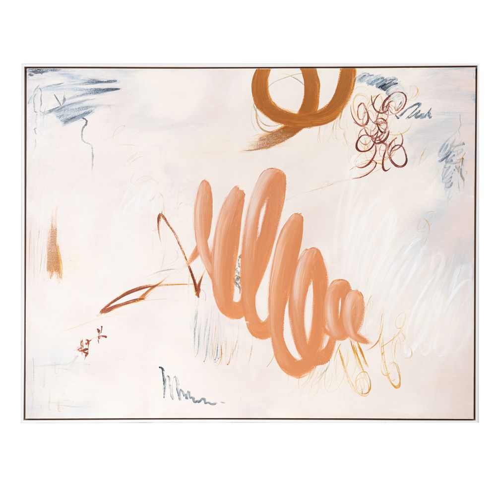 A modern composition that is free spirited yet beautifully balanced, Graffiti oil on canvas combines fluid shapes with abstracted linework in an earth inspired colour palette of graphic movement. Injecting interiors with a sense of urban cool, the hand painted Graffiti oil entices with layers of delicate tone and texture creating an artwork that is bold and interesting without being overstated. Encased in a matte white shadow box frame, Graffiti oil on canvas makes a striking display at 140 x 110cm.