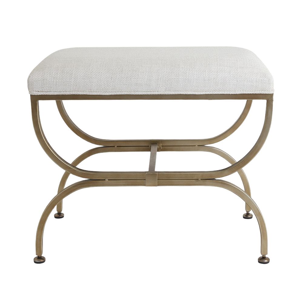 Transform your bedroom or living space with Novak, a stunning stool upholstered in natural cotton atop a solid iron antique gold cross-leg frame, blending comfort and sophistication. This versatile Novak bedroom stool, with no assembly required, adds opulent charm to any interior, embodying timeless elegance inspired by classic design.
