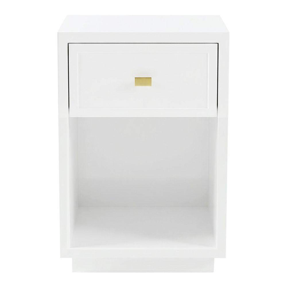 The Logan bedside table brings refined simplicity to your space with a crisp white satin finish and clean, structured lines. Subtle shaker-style panelling adds classic detail, while a single drawer and open shelf create practical bedside storage. Designed for versatility, this piece suits both contemporary and traditional interiors with ease. Complete with a brushed gold handle, the Logan in white offers a timeless and effortlessly elegant addition to any bedroom.