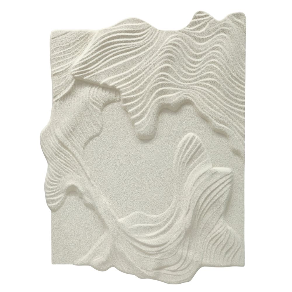 The Ocean Ripple Carved Wall Art brings a calming, sculptural presence to contemporary interiors. Featuring fluid, wave-like carvings, its organic form captures the gentle movement of ocean tides in a refined, monochromatic finish. The soft white palette enhances light and shadow, allowing the intricate ridges and contours to create depth and visual rhythm across the surface. Its freeform silhouette adds an artistic edge, making it a true statement piece. Ideal for living spaces, bedrooms or serene retreats, Ocean Ripple introduces tactile elegance and a tranquil, design-led aesthetic.